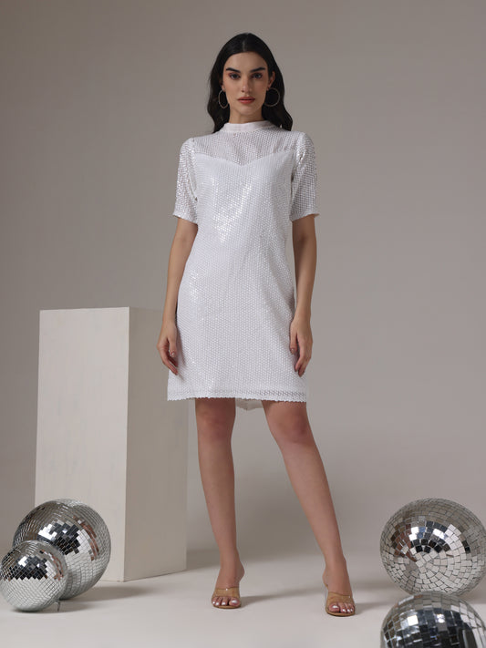 SEQUINNED EMBROIDERED FRONT ZIPPER DRESS